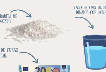 Necesitas:✨Un vaso de cristal sin dibujos✨Un billete de la denominación que prefieras✨Agua ✨Un puñado de sal.