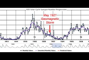 Los investigadores del clima espacial frecuentemente llaman al evento de mayo de 1921 como una “tormenta única en 100 años”. Sin embargo, investigaciones recientes sugieren que tales tormentas ocurren con más frecuencia; cada 40 o 60 años. De cualquier manera, estamos atrasados.
