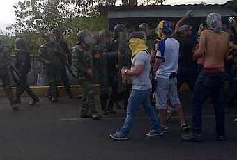 Así reprime el pueblo a los policías en Venezuela... BRAVOOOOO !!! San Cristobal.... Corriendo a los guardias en la avenida 19 de abril, 21-02-2014, San cristobal- Tachira, Venezuela