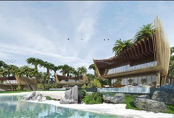 Una fusión de diseño contemporáneo europeo, occidental y oriental, donde el agua y el mar se convierte en un concepto fundamental. Las líneas curvas y orgánicas fluyen continuamente alrededor de la fachada en forma de lamas escultóricas, que al mismo tiempo que enmarca la propia arquitectura, la traslada hacia el paisaje.