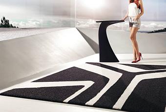 También está disponible un modelo de alfombra con un diseño le líneas curvas con un acabado en escala de grises, que transmite una ligera sensación de movimiento.