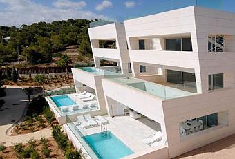 Continuamos la serie sobre la exclusiva urbanización en Ibiza con más material gráfico, enfocado en este caso a los bloques de viviendas de tres plantas.