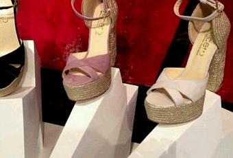 Las distintas inclinaciones, así como el efecto zigzagueante de la pieza logran transmitir una sensación de movimiento al calzado expuesto.