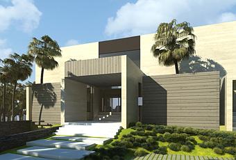 El diseño ortogonal y la combinación de volúmenes favorecen la creación de los espacios antes mencionados para el disfrute del entorno. Los acabados propuestos son materiales naturales como la piedra en muros exteriores, y la madera y piedra natural blanca en la fachada.