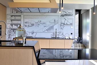 Asimismo, las referencias escultóricas, tan características del trabajo A-cero, se pueden apreciar en las encimeras, armarios y mesas, cuyas formas geométricas y líneas quebradas otorgan una personalidad inigualable y diferente respecto a las tradicionales cocinas.