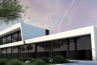 A la derecha de la entrada a la fundación se propone la creación de una composición vegetal, constituida por 12 cipreses, por tratarse la imagen corporativa de la fundación. Este grupo de cipreses surgen de un gran prado florido puntuado por grupos dispersos de pitósporos.