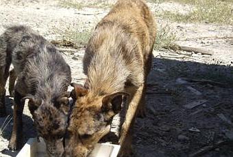 Aunque son tímidos porque no han tenido contacto humano, cuando nos ven vienen corriendo moviendo sus colitas y gimiendo. La hembra se retuerce y enseña los dientes como sonriendo mientras mueve la cola, el macho ya se deja tocar.