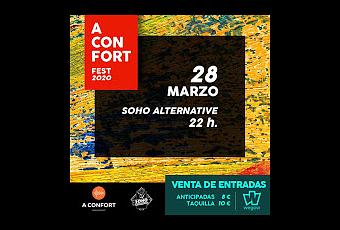 Nace el A confort Fest en Cádiz con un cartel que conoceremos dentro de poco y que promete sorpresas.Nace el A Confort Fest, una propuesta a una jornada en Cádiz con sabor a música en directo.El A Confort Fest nace como una propuesta festivalera en la que habrá mucha música en directo. El 28/3 en la Soho Alternative encontraremos los artistas de esta primera edición, na serie de nombres que conoceremos dentro de poco. Por lo pronto os dejamos algunos datos previos.
