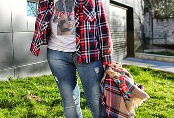 Hoy os muestro un look para dar un paseo e inaugurar el primer terraceo del año :) Llevo mi nueva camisa a cuadros (casi todo el mundo tiene, por que das dos pasos por la calle y mira la camisa!! jeje) con camiseta blanca, jeans y converse. Como complementos collar gris de serpiente, bolso azul y bufamanta (porque las noches aun caen fresquitas).
