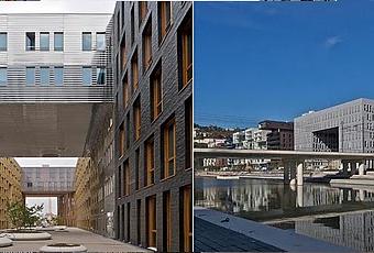 En el caso de Lyon (a a izquierda), al igual que en Madrid, MVRDV recomponen la tradicional manzana abriendo huecos, creando grandes puentes y voladizos que recalifiquen el espacio comunal, abriéndolo a la ciudad y re-interpretando esta. También insisten en la variedad de "palazzi", pero en esta ocasión, haciendo que cada uno de estos cuerpos sea diseñado por estudios diferentes y acojan usos variados. ¿Queda así legitimada la actuación?También resulta llamativo el esfuerzo que supone edificar estos cuerpos puente, cuyas cerchas son alardes de ingeniería, todo un reto para las constructoras. Sin embargo una vez revestido el edificio, estas quedan ocultas tras la piel, ningún espectador profano es capaz de adivinar cómo ese "palazzo" puede sustentarse, no aprecian el mérito: ¿Es esto lógico?, ¿realmente queda justificado ocultar la mega-estructura en favor de potenciar el espacio que conforma el cuerpo volante?