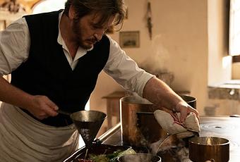 La película representa un desafío muy particular, el permiso protagonista hacia una prioridad gastronómica a cualquier sensación añadida que puede intervenir del reparto principal. El film está realizado con preciso detalle en cada momento a la hora de realizar los platos. Esos tiempos visualizamos y escuchamos cualquier preparativo y proceso de cocinado, los cortes de cuchillo, manipulación de alimentos, el vapor de cocción, caldos que fluyen por el filtro...cualquier secuencia de todo ingrediente está cuidada y estudiada milimétricamente integrado dentro de la época, utensilios de cocina, recipientes, artículos y otros aspectos de ambientación, iluminación y vestuario.