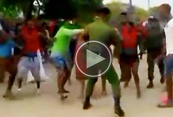 Con reclamos de “abusadores” comienza esta pelea entre civiles y uniformados armados.