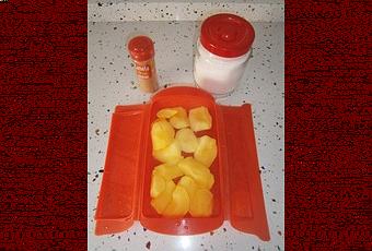 microondas: pelar, cortar en trocitos y al microondas. El tiempo que las tuve, pues ni idea. Iba abriendo y cerrando hasta ver si estaban en su punto. Lo que me mola, es este maravilloso cofre de Lékué que me regaló mi querida tía (me cuida muy bien la tía!). Lo uso muchísimo en el microondas. Yo, que cuando estoy sola no me lio en la cocina y tiro del microondas a las mil maravillas, este cofre me viene de perlas. El colofón de la compota, es echarle
