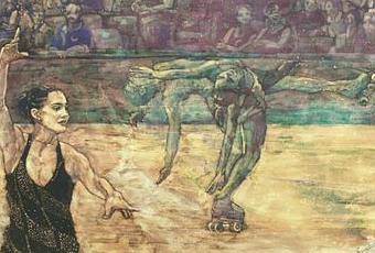 Haya un diálogo implícito entre la patinadora y el espectador como entre el artista pintor y quien contempla el cuadro.