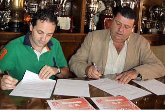 El gerente del Granada CF, David Navarro, ha firmado esta mañana un convenio con el administrador de la plaza de toros de Granada, José Jesús Cañas Verdugo, mediante el cual los aficionados granadinos que hayan adquirido su entrada para el partido de esta noche frente al Elche, y todos aquellos que compren entrada para asistir al choque del próximo sábado en el estadio ‘Martínez Valero’, tendrán un descuento del 50% en la compra de la entrada para asistir a la corrida de toros que se celebrara el día 19 en el coso nazarí. Para ese día se anuncian toros de San Martín para el rejoneador Sergio Vegas, que lidiará un ejemplar en puntas, El Güejareño, Jesús Fernández “Yiyo” y Chamaquito de Granada, que tomará la alternativa.