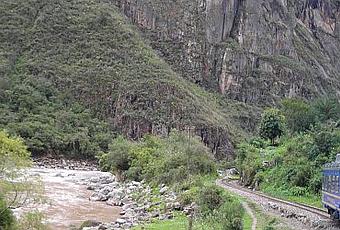 Nosotros tomamos uno de categoría intermedia, el denominado "Vistadome", que tiene ventanillas en el techo para ver el paisaje. También incluye un servicio de bocaditos y bebidas. Viajamos de maravillas. Desde Ollantaytambo hasta Aguas Calientes son unas tres horas en medio de montañas y más montañas. Las vías van paralelas al río Urubamba, que en épocas de lluvia (noviembre a marzo) es temible. En varios tramos en las orillas se observan destrozos por la fuerza del agua y restos de vía férrea arrancados en crecidas de años anteriores.