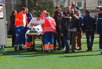 Cuando se llevaban disputados 10 minutos de partido la cuenta de twiter @CanteiraCeleste (foto) informaba de que el encuentro que disputaban en A Madroa los locales y el Depor, correspondiente a la División de Honor Cadete se paralizaba a consecuencia de la alarma que en principio creó la lesión del deportivista Aarón Sanchez, debido a un choque que dejó inconsciente al jugador en el terreno de juego. La ambulancia tardó 20 minutos en llegar al recinto, mientras los médicos de ambos equipos atendian al futbolista. Las últimas noticias de Coruña que vemos abajo, son optimistas y todo quedará afortunadamente en un importante susto para todos. Una vez mas habría que plantearse la necesidad de la presencia fija de una ambulancia en un lugar en donde se disputan muchos partidos, veinte minutos a veces puede ser demasiados. Mucho ánimo a Aarón, al que sus compañeros dedicaron la victoria final en un partido en el que lo mas importante no fue el resultado.