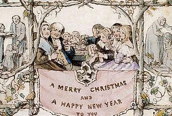El origen de la imagen que os ofrezco en su lugar y que ha alcanzado esa especie de consenso como primera tarjeta navideña es británico. La felicitación data del mismo año en que Charles Dickens publicó su tan navideña obra Canción de Navidad, es decir, de 1843. Sin embargo, más que ese espíritu navideño tan caracteríticamente dickensiano que tanto ha calado en la cultura popular fue el sentido práctico lo que inspiró su impresión y distribución. Fue el funcionario y polifacético diseñador inglés Henry Cole quien, preocupado por la ingente cantidad de tarjetas que tenía que escribir y enviar para que llegaran a sus numerosas amistades antes de Navidad, le pidió a su amigo el pintor John Callcott Horsley que diseñara e ilustrara una tarjeta con una escena familiar típica de estas fiestas y un mensaje genérico. El pintor tuvo además el detalle de incluir dos espacios para escribir —uno en la parte superior de la tarjeta y otro en la inferior— precedidos de un 'Para:' y de un 'De:'. De esa manera, además de facilitarle el trabajo a su amigo —pues este tan solo tendría que escribir los nombres de destinatario y remitente—, le daba la oportunidad de personalizar las felicitaciones. La imagen que comparto corresponde en concreto a la felicitación que el propio Horsley personalizó para Cole. En lugar de la firma del pintor puede apreciarse en la parte inferior de la tarjeta el dibujo de un simpático autorretrato. Así lo cuentan desde el Victoria and Albert, el Museo Nacional de Arte y Diseño del que Henry Cole fuera su director fundador. Tanto a Cole como a Horsley la idea de realizar copias de la tarjeta les pareció tan buena más allá del uso personal que, adelantándose a su tiempo, decidieron comercializarla. Encargaron la impresión de 1000 tarjetas que pusieron a la venta por un chelín. La empresa no fructificó como esperaban, quizás —entre otras cosas— porque el precio era algo elevado para la época. No obstante, no habría que esperar demasiado para que la comercialización de la tarjeta de Navidad, actualmente tan en desuso, se hiciera una realidad. Respecto a la de Henry Cole, os cuento a modo de cotilleo que la imagen que la ilustra no estuvo exenta de cierta polémica por figurar en ella un niño bebiendo lo que supuestamente es una bebida alcohólica.