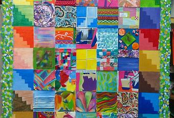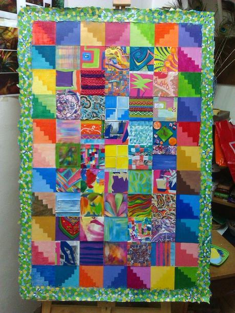 Todo aquello que iba a terminar en la basura porque... esto no vale una mierda, esto es una porquería, esto no me va a servir de nada, menuda cagada que hice.... etc etc etc terminó en ese cuadro. Se transformó en un cuadradito de 10 x 10 cm. Había que darle otro final, pobrecito. Todo aquello que no me srivió durante un año, lo reutilicé. Y le di otro uso, otro valor, otorgándole otro contexto en donde encajase y donde pudiese volver a funcionar. Necesitaba hacerlo. Necesitaba levantar el estado de ánimo. Y lo hice muy poco a poco, me tomé mi tiempo. Como dicen acá en la Argentina... "de a poco, todo se va acomodando". Y así fue creciendo el cuadro. Tomando ese acto simbólico de "acomodar de a poco" las piezas de esa especie de chamanto que me he ido fabricando. Ese acto simbólico de "no quedarse quieto, sentado en el lamento y en la queja". He aquí el resultado de ello, de ese proceso de recapacitación, de no quedarme estancada. No sé si finalmente lo he logrado, pero al menos hoy, he cerrado una etapa de mi vida. Empiezo otra de nuevo. Muy pronto el Taller cerrará sus puertas y lo hago transformando todo lo negativo que me pasó en el resultado bello y colorido de este chamanto de lamentos, decepciones, errores, caos y desesperación. En ese A NEGATIVO que me alegra la mirada cada vez que lo miro.