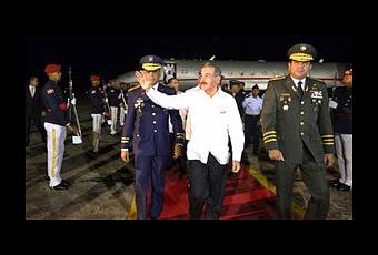 Fue recibido por el ministro de Defensa, teniente general William Muñoz Delgado; el comandante de la Fuerza Aérea, mayor general piloto Elvis M. Feliz Pérez y el jefe de la Guardia Presidencial, general Braulio Alcántara López.