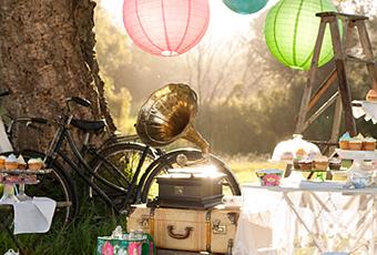 Si a pesar de todo crees que no es buena idea, puedes elegir lo que mas te guste de los picnics y adaptarlo a tu boda. habilita una zona con cestas de mimbre y manteles de cuadros y limonada natural, o un photocall con mantas y cojines en el suelo, y bolsas de craft con piezas de frutas. Será un set muy original para las fotos de los invitados, por ejemplo.