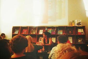 Para ilustrar un poco lo que ha sido el trabajo de la revista, se mostró un video cortito que recorría los siete números que hasta el momento tiene publicados, y Alejandra Laurencich entrevistó en vivo, de un modo bien balandrero, a la escritora Patricia Suárez.