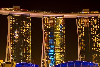 El edificio más característico de Singapur es el Marina Bay Sands, ese gigantesco hotel al que le han puesto un barco encima. Yo creo que el dueño le dijo al arquitecto “Oye, me gustan los barcos: no hay huevos a ponerle uno encima al hotel!”. Y mira lo que consigue el dinero! El edificio impresiona, y de noche más aún. Se puede atravesar por el centro, y también subir a la terraza de arriba por unos 23 SGD.