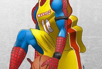 Ilusttración publicada en http://www.ufunk.net/illustration/spiderman-basketball/