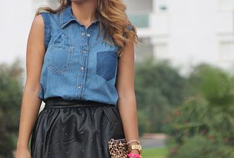 Un look sencillo pero perfecto para cualquier ocasión. La falda negra+tachas es de la nueva temporada de Suiteblanco, la he combinado con esta camisa vaquera. Que os parece esta combinación? Hoy vengo con un look cargado de tendencias para la nueva temporada!