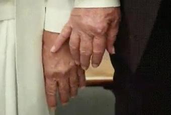 Miles de internautas han compartido 'un video captado' por la cadena estadounidense en la que Trump, quien se vio rechazado en su intento de dar la mano a su esposa en varias ocasiones durante la gira, trata de obtener consuelo en el Sumo Pontífice, quien también lo rechaza.