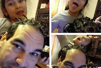 Otra cosa que le fascina es su kit de doctora, mismo doctora juguete, ella hace su chequeo médico utilizando todos los utensilios disponibles, muchas veces me ha tocado a mi hacer de paciente, herido, golpeado, atropellado o lo que fuera y siempre es muy divertido. Otra cosa que disfruto mucho es cuando me toca hacer de cliente de peluquería, porque incluye corte, cepillado, uñas y maquillaje, me ha tocado terminar con ganchos de cabello, colitas y hasta con maquillaje, con sombras y todo, con maquillaje para niños o con los de mi esposa tiene guardados, ya como que mucho sacrificio ¿no?