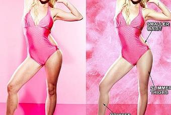 Antes y después de las imágenes retocadas. Así podemos ver ahora a Britney Spears en las fotografías tomadas para la marca de ropa Candie´s de la que la cantante es imagen hace varias temporadas.