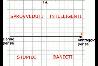 Los inteligentes(benefician a los demás y a sí mismos).Los incautos(benefician a los demás y se perjudican a sí mismos).Los malvados(perjudican a los demás y se benefician a sí mismos).Los estúpidos(perjudican a los demás y a sí mismos).Vuelvo a recordarlo porque últimamente sólo veo malvados y estúpidos; ni los inteligentes, ni siquiera los incautos, menudean.