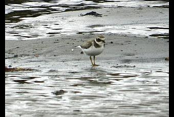 Chorlitejo grande Charadrius hiaticulaSe trata muy probablemente de un joven de la subs. tundrae, que se reproduce en el norte de Escandinavia y en Siberia, caracterizada por su menor tamaño y porque conserva el plumaje juvenil hasta llegar a los cuarteles de invierno, donde ya lo muda allá por el mes de noviembre.