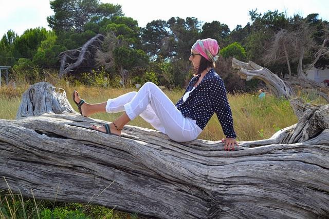 Para los días de viento en la playa no hay nada mejor como un jumpsuit largo en tejidos transpirables y ligeros como es el lino.Cubréte con una camisa sedosa que te protega de la brisa. Los lunares siguen siendo unos de los must de la temporada.Adorna tu cabellera con un turbante o pañuelo en colores vibrantes o estampados místicos. Si lo deseas, aporta frescura a tu look con complementos sencillos.