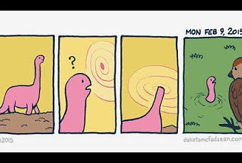 Esta tira aparecida en "The Dailies", la tira cómica diaria que Dakota McFadzean publica en su web, podría ser una buena hipótesis para explicar la extinción de los dinosaurios. El trabajo de este dibujante canadiense ha aparecido en The Best American Comics, Mad Magazine, Broken Pencil o Prairie Dog entre otros. Su primer libro, "Other Stories and the Horse You Rode in On" fue publicado por Conundrum Press en 2013.