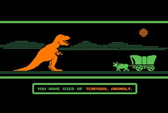 The Oregon Trail (conocido como Pioneros de Oregón en español), es un videojuego creado por Don Rawitsch, Bill Heinemann y Paul Dillenberger en 1971 con el objetivo de enseñar a los niños de las escuelas estadounidenses cómo vivían los pioneros de la Ruta de Oregón durante el Siglo XIX. Ha tenido más de una decena de ediciones y es conocido por multitud de norteamericanos. Una de las muertes habituales en el juego era por disentería ("You have died of dysentery" es uno de los mensajes recurrentes). Pero en el caso que nos ocupa, la ilustradora estadounidense geekfactor12 ha introducido una variante: el agujero de gusano. Esta paradoja espacio-temporal hace que en su diseño de camiseta para Shirt Woot aparezca un tiranosaurio que acabará con esos pioneros de Oregon. Puedes conseguirla aquí por algo menos de veinte dólares.