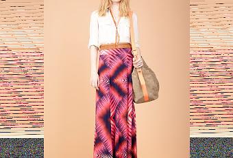 ¡Hola a todos! Cómo están? Espero que super bien! Les cuento que estoy teniendo una semana fabulosa. Ayer fue un gran día! Ya van a tener novedades como siempre en ModaZip... Hoy, temprano. Hoy, clásico. Abajo de la pasarela nuevamente. Esta vez elegimos como ítem una falda con estampa y recortes de Vitamina. Arriba de la pasarela, en el lookbook de la marca, acompañado por camisa blanca, cinto, sandalias de gamuza azul y bolso visón con correa de cuero. Abajo de la pasarela, de la mano de Esmeralda Mitre, también con camisa, pero transparente, negra y blazer en igual tono. El detalle? su Speedy de Louis Vuitton...