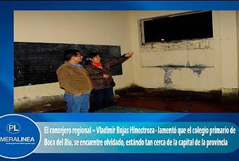 Colegio primera de Boca del Rio en San Vicente de Cañete fue visitado por consejero regional –Vladimir Rojas. Niños estudian en aulas deterioradas y bajo calaminas picadas por el tiempoTan cerca a la capital de la provincia, pero tan pobre de presencia de sus autoridades y de obras –dijo – el consejero regional – Vladimir Rojas Hinostroza –durante su visita al colegio primario de Boca del Rio en San Vicente de Cañete.