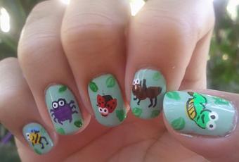 Para esta manicura decidí representar a varios insectos, uno en cada uñas. Y el resultado fue el siguiente...