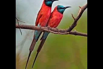 El abejaruco carmesí o abejaruco carmesí norteño (Merops nubicus) es una especie de ave coraciforme de la familia de los merópidos que vive en África.- Alimentación