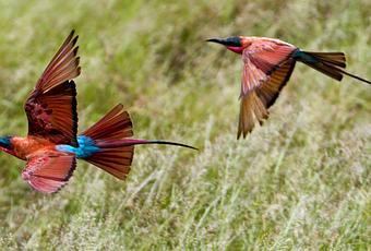 El abejaruco carmesí del sur (Merops nubicoides) es una especie de ave coraciforme de la familia Meropidae que vive en el sur de África, desde KwalaZulu-Natal y Namibia hasta Gabón, el sur de la República Democrática del Congo y Kenia.Esta especie, como los demás abejarucos es una ave muy colorida, en su plumaje predominan los tonos carmesí, con excepción del píleo, el obispillo y las cobertoras de la cola que son azules.