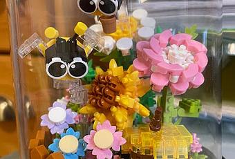 Ya que lleva flores y las abejitas que me encantaron, son super mini winy, el bloque es como el del Palacio de la Luna, super super mini.