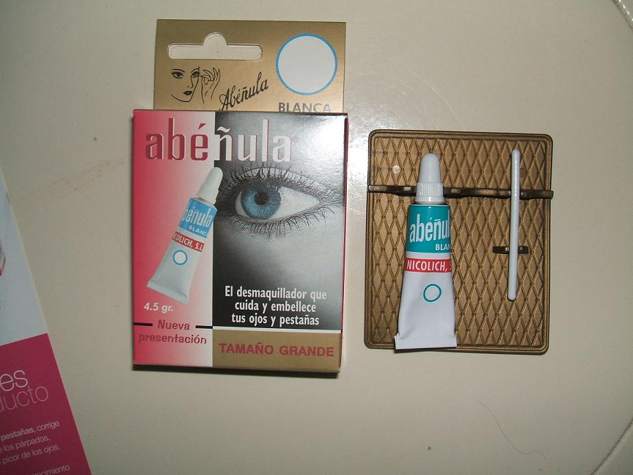 Se presenta en una cajita de cartón con un palito de plástico. Es un envase pequeño de 4.5 gr pero que dura un montón ya que con una gotita en el disco desmaquillante es más que suficiente.Es una crema blanca densita, que da brillo a los parpados y desmaquilla genial. Además no irrita nada los ojos ni deja sensación grasa y pringosa. Me ha impresionado muchísimo, ya que parece que cuando te aplicas el disco desmaquillante con el producto parece como si no llevase nada. Yo lo utilizo dando masajes circulares por los párpados. Además deja los parpados muy hidratados y suaves.Contiene lanolim, petrolatum, paraffinum, liquidum, aqua, glyceryn y sodium borate.- Abeñula color: