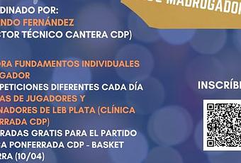 El Club de Baloncesto Ciudad de Ponferrada abre el plazo para inscribirse en su I Campus de Semana Santa Ciudad de Ponferrada. Coordinado por Fernando Fernández, director técnico de la cantera del CDP.