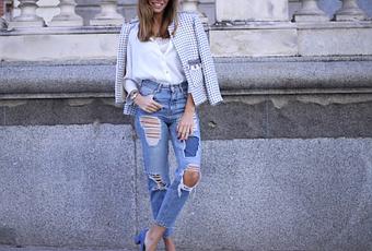 And I end today’s post telling you that I do love this jacket that I actually have in two colors. Today I show you the blue one but soon I will show the nude-pink. I think that combined with boyfriend ripped jeans is a great success for a more casual touch and I’m also in love with my new medium heel blue shoes. I’m sorry girls but it seems that ‘grandma’ heels are back, and I love them! Probably it all started with the Chanel slingback that I have shown you in some posts…