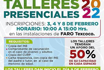 La invitación para integrarse a estos talleres es abierta para todo el público en general, los interesados deberán presentarse en el FARO de Texcoco, llevando una copia de identificación oficial (INE, Pasaporte, cartilla), comprobante de vacunación en el caso de adultos y jóvenes, copia del CURP y carta responsiva del INE del padre o tutor, en caso de los mejores de edad.