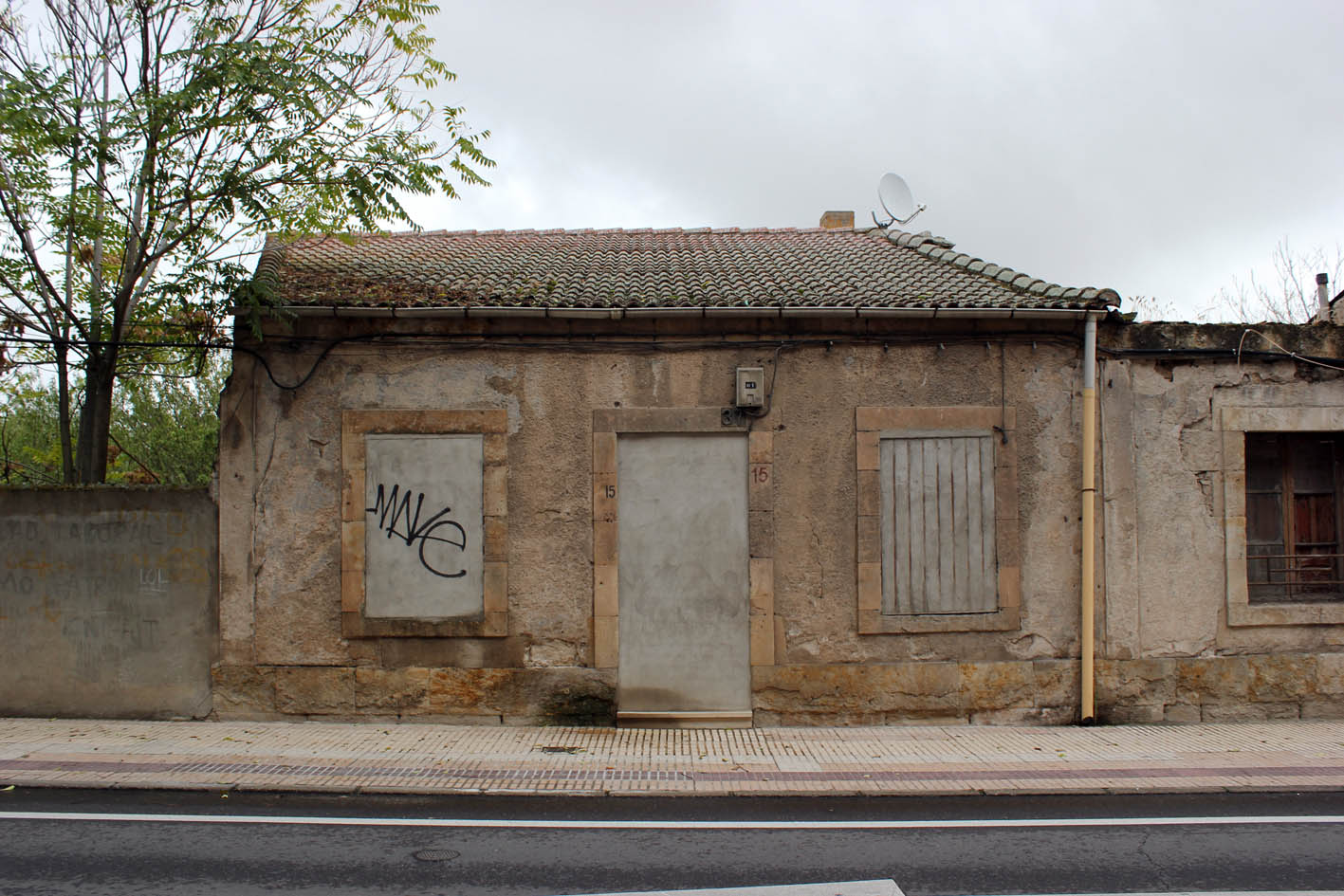 Puerta y ventanas ciegas en la calle Colombia, barrio del rollo, Salamanca.