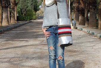 Sabéis , que soy forofa de ellos, me chiflan y me vuelven loca, y la verdad, que cada uno de ellos. son mis bienes más preciados, Este , en piel plata envejecida con tejido huertano ( muy de nuestra región ) y asas en negro y rojo. Una combinación espectacular, en cuanto lo vi a lo lejos, mis ojos no podían dejar de mirarlo.