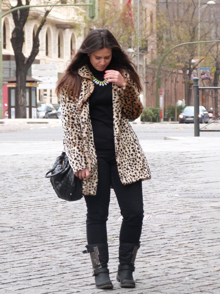 Vamos a empezar bien la semana. Os voy a enseñar la típica compra que dudas un montón en la tienda y mandas un guasap con foto a tus amigas bloggers para pedir consejo.....¿Me compro este ABRIGO DE LEOPARDO?Es muy duro ¿eh? jaja, que un abrigo de leopardo mal puesto te puede hacer parecer desde una viejita hasta una meretriz. Pero bueno, como costaba 30€ tampoco tenía que pensar mucho...Ayer estuve paseando todo el rato por Madrid y por eso no me puse tacón, pero ya prepararé otro look mas arregladito.